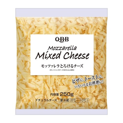 糸ひきが良くピザやグラタン、トーストに最適なモッツァレラチーズを80%以上配合したシュレッドチーズです。加熱して調理用途としてお使いいただけます。見た目もシンプルなデザインにしております。 |