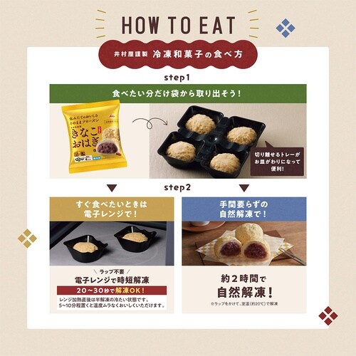 食べたい時にいつでも手軽に食べられる本格的な冷凍和菓子北海道産小豆、国産もち米使用。北海道産小豆を使用のつぶあんを、国産もち米から作ったおはぎ生地で包みました。 |