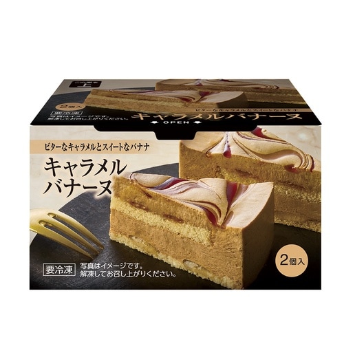 ビターなキャラメルとスイートなバナナ【王道×王道の組み合わせ】ほろ苦いキャラメル味のケーキにバナナソースとキャラメルソースをサンドしました。 |