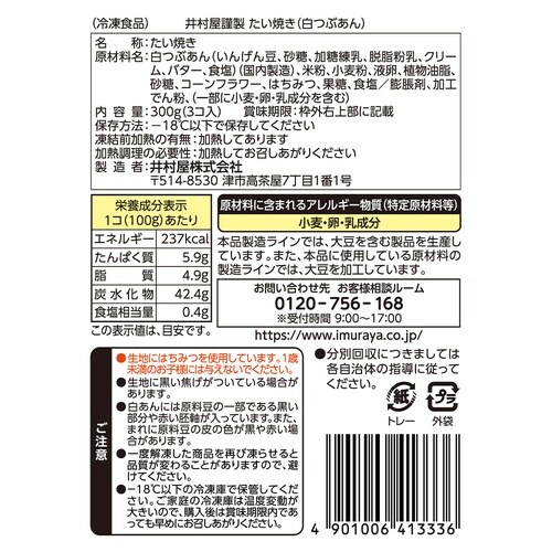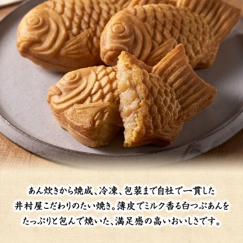 あんが自慢の井村屋が作るミルク香る白つぶあんをたっぷりと包んだ本格薄皮たい焼きです。 |