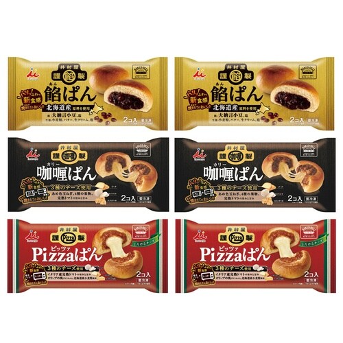 /[冷凍] 井村屋 井村屋謹製 餡ぱん 188g/[冷凍食品]井村屋 井村屋謹製カリーぱん 180g/[冷凍食品] 井村屋謹製Pizzaぱん 90g×2/各2袋詰め合わせております。 |
