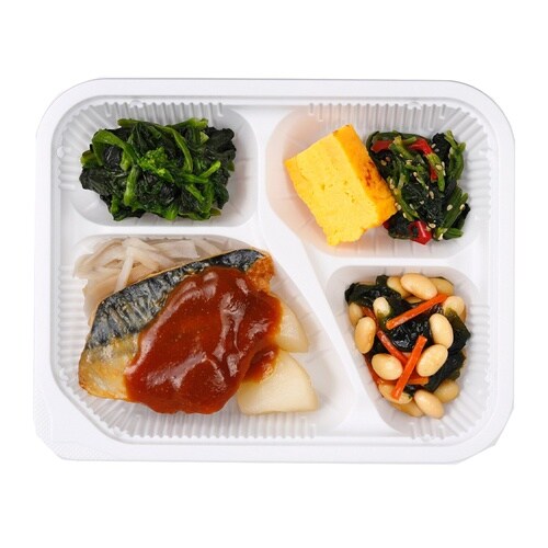 きくばりごぜんシリーズは1食あたり カロリー300kcal以下、塩分2.0g以下、野菜使用量100g以上の冷凍総菜セットです。野菜使用量…芋類きのこ類海藻類豆類を含む。生鮮換算。
