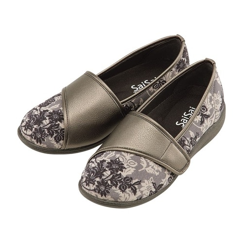 マリアンヌ製靴 SaiSaiフラワープリント リハビリシューズ 25−5805−05 彩彩 W940(24.0CM)ブラック 1足 A065-7049
