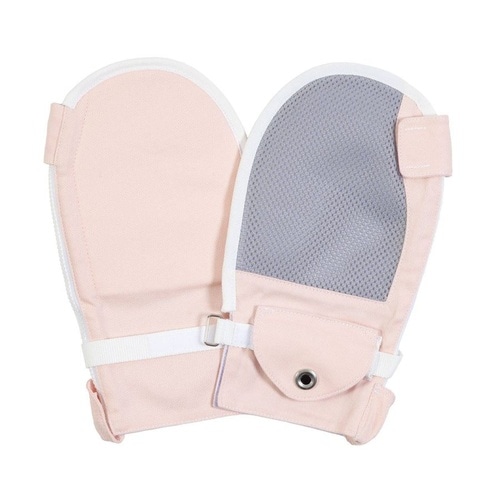 側面が大きく開くのでご利用者様に着けやすく、外しやすい 手首のベルトを着けたままサチュレーションや手指の清拭が可能 不快感の少ないメッシュ生地を手の甲側に採用 |