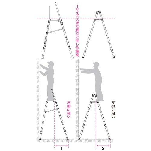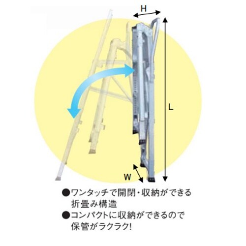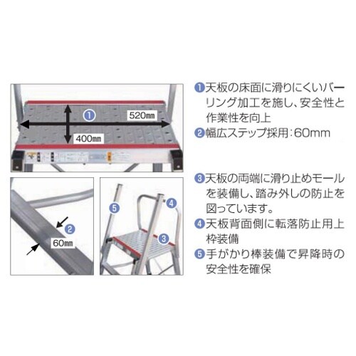 最大使用荷重:150kgf | 天板高さ(m):1.46ー1.82 | 天板サイズ:520×400mm | 全高(m):2.06ー2.42 | 折りた…