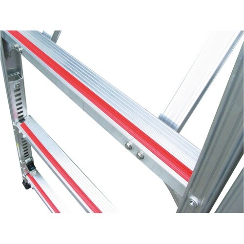 安全で安定した作業のために、踏み外しや天板からの転落防止機能を取り入れた安全装備満載の可搬式作業台です。