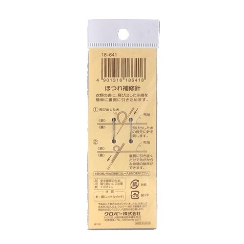 0.9x65.0mm・0.6x65.0mm ほつれ補修針(2本) EA916JK−1 A065-9482