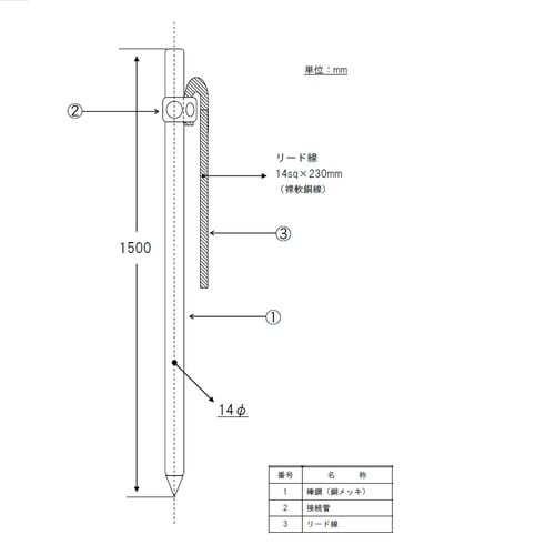 棒鋼(銅メッキ):SS400接続管:C1220Tリード線:軟銅撚線