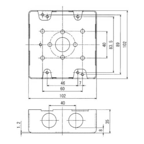 サイズ:102×102×35mm | 穴径:20mm | 材質:スチール(電着塗装仕上げ) | 重量:210g | その他仕様:埋込用スイッチボックス…