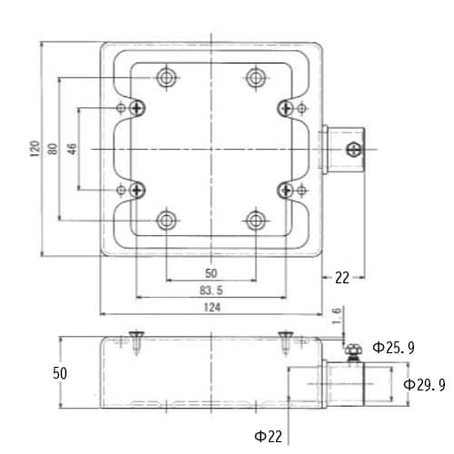 呼び:E25 | サイズ:124×120×50mm | 材質:スチール(電気亜鉛めっき仕上げ) | 重量:510g | その他仕様:2個用1方出 | …