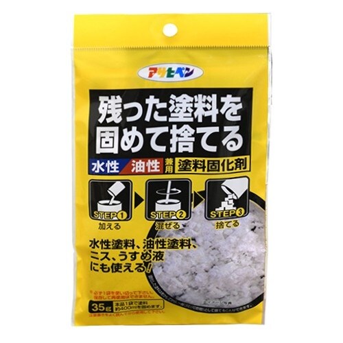 内容量:35g | 廃塗料の処理目安:35gで約400mlまで | その他仕様:水性・油性塗料、ラッカー、ニス、ステイン、薄め液などの廃棄処理用 | …