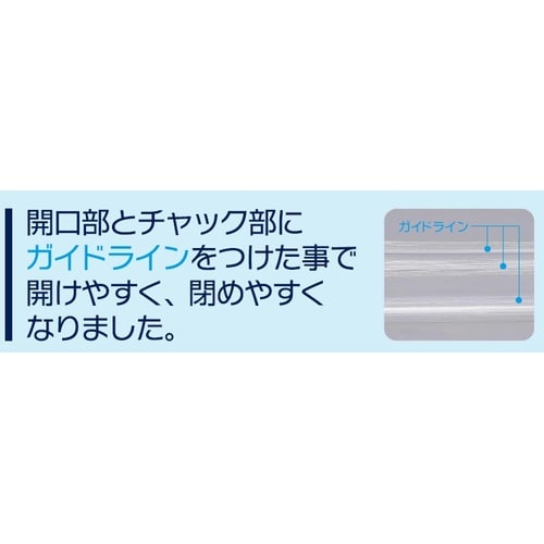 PE単層40μ(チャック部分着色加工)、サイド溶断シール、天開き、底折返し、開口段差カット