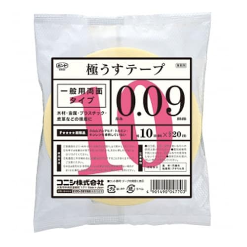 メーカー:コニシ | 型番:#04770 | 商品名:極うすテープ | 幅:10mm | 長さ:20m | 厚み:0.09mm | 材質:基材:不織布…