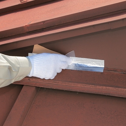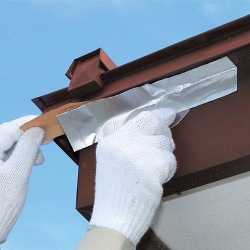 耐候性・耐久性を高めるために肉厚アルミに防水性粘着剤をあわせ、雨がえし部などの水もれ対策に大活躍します。