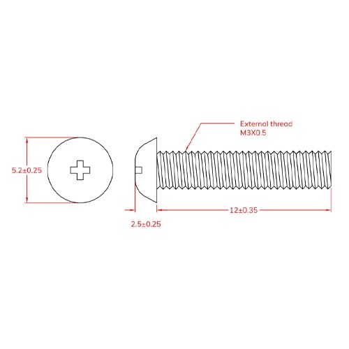 サイズ:M3 | ピッチ:0.5 | ねじ長:12mm | 頭径:5.2mm | 頭部高さ:2.5mm | 材質:ポリカーボネート | カラー:透明 …