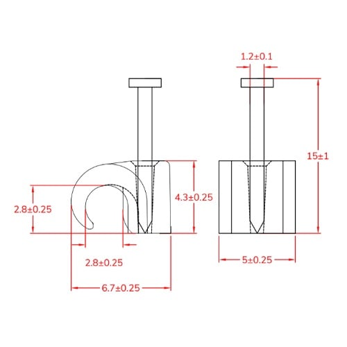 ケーブル径:2ー3mm | 釘サイズ:1.2×15mm | 材質:ポリエチレン | カラー:クリアー | 入数:100個 | その他仕様:釘で止めて丸…