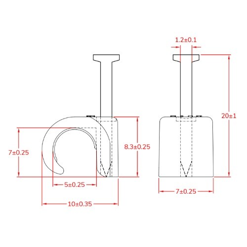 ケーブル径:5ー8mm | 釘サイズ:1.2×20mm | 材質:ポリエチレン | カラー:白 | 入数:100個 | その他仕様:釘で止めて丸形ケー…