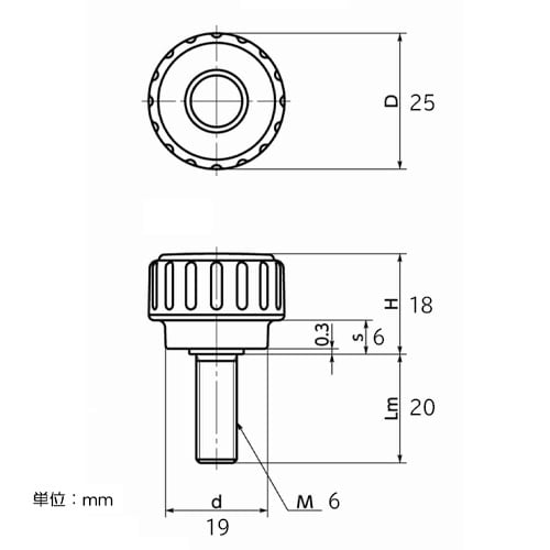 D:25mm、H:18mm、s:6mmd:19mm、Lm:25mm