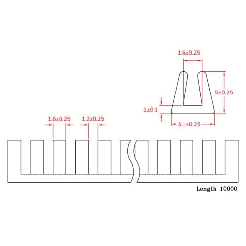 適応板厚:1.2ー1.6mm | 全長:10m | 幅:3.1mm | 高さ:5mm | 厚み:1mm | 材質:ポリエチレン | 単位:1本