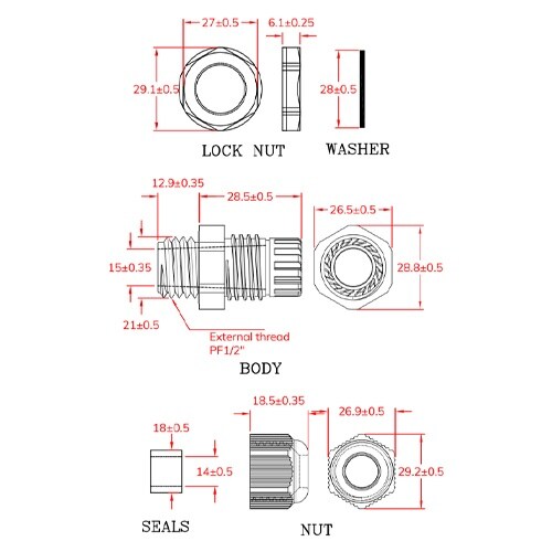 適応ケーブル径:10ー14mm | 取付ねじ:G1/2” | 下穴径:21mm | 防水保護等級:IP68 | 材質:ナイロン66 | 入数:10個 …