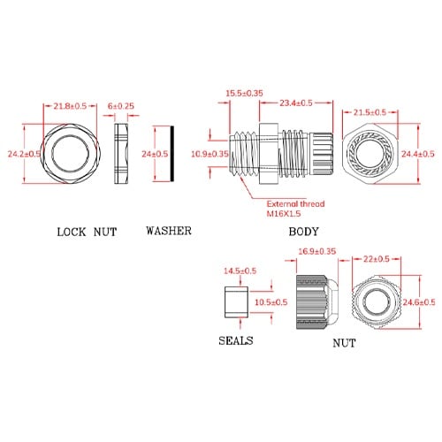 適用ケーブル径:5ー10mm | ねじサイズ:M16×P1.5 | 取付穴径:16mm | 防水保護等級:IP68 | 材質:ナイロン66 | 入数:…
