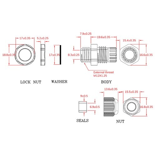 適用ケーブル径:3ー7.5mm | ねじサイズ:M12×P1.25 | 取付穴径:12mm | 防水保護等級:IP68 | 材質:ナイロン66 | 入…