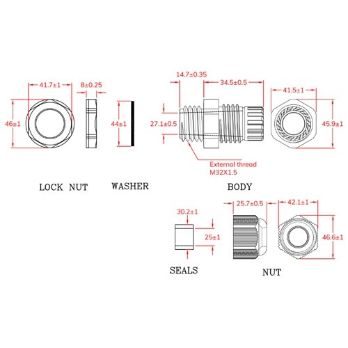 適用ケーブル径:18ー25mm | ねじサイズ:M32×P1.5 | 取付穴径:32mm | 防水保護等級:IP68 | 材質:ナイロン66 | 入数…