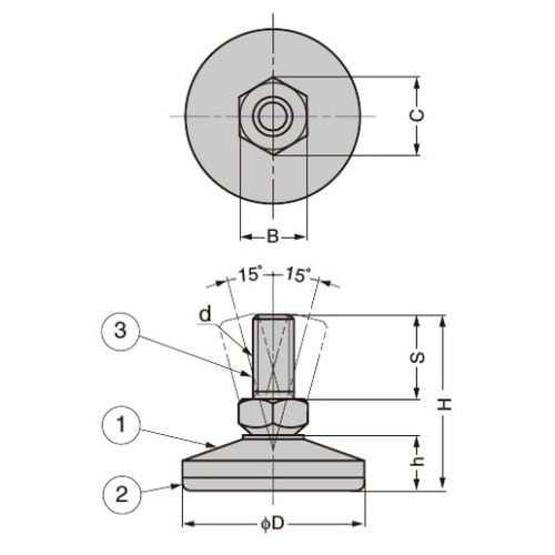 ベース径(mm):25 | ねじ:M6×14 | 耐荷重(kg):60 | 材質:本体:ステンレスSUS304(ヘアライン仕上げ)底部:ポリアミドPA…