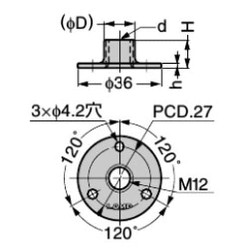 外径×高さ:36×12mm | ねじ:M8 | 材質:ステンレス鋼(SUS304) | サイズ:d:M8、D:9.6mm、h:1.5mm、H:12mm…