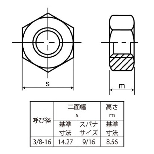 UNC 3/8  六角ナット 1種(ステンレス/2個) EA949LT−58 A066-7185