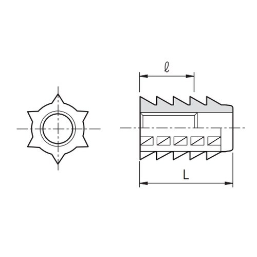 木ねじを使う部分に安定した反復使用と締付強度を与える為に開発されたナットです。