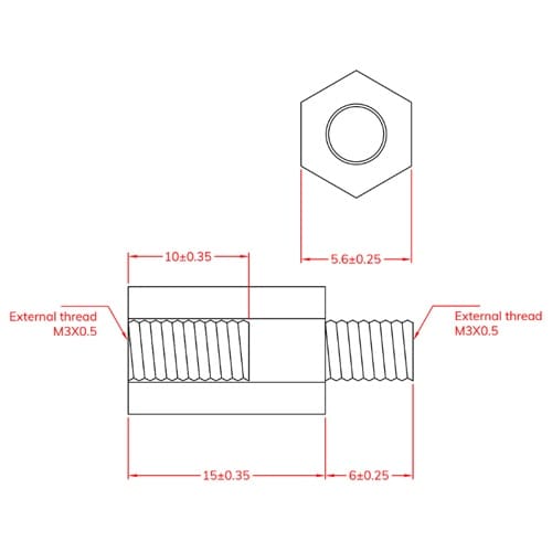 頭対辺:5.6mm | サイズ:本体:15mm雄ねじ:6mm | 使用可能なナット:M3×0.5 | 材質:ナイロン66 | カラー:ナチュラル | …