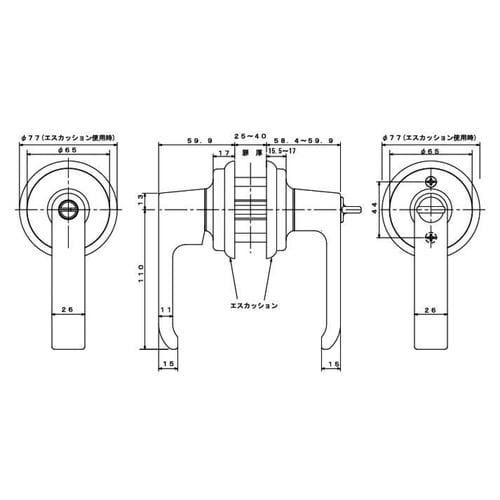 レバー長さ:123mm、出幅:59.9mm、丸座径:φ65mm