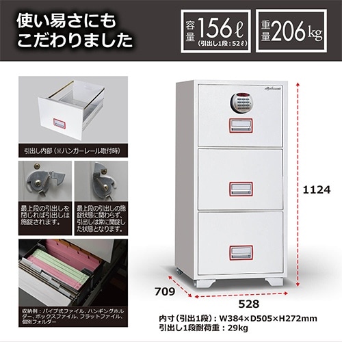 528x709x1124mm 耐火ファイリングキャビネット EA954HE−56