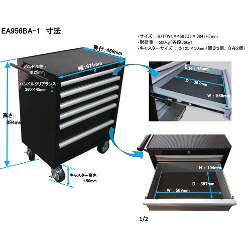 671x459x 884mm/6段 ツールワゴン EA956BA−1 A067-1654