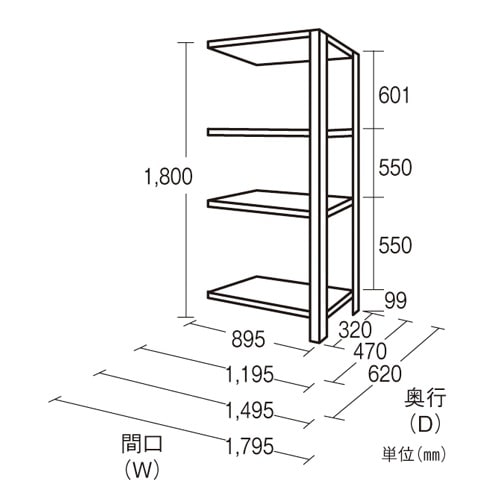 1495x620x1800mm/200kg/4段 スチール棚(連結用 EA976AD−150DC A067-2600