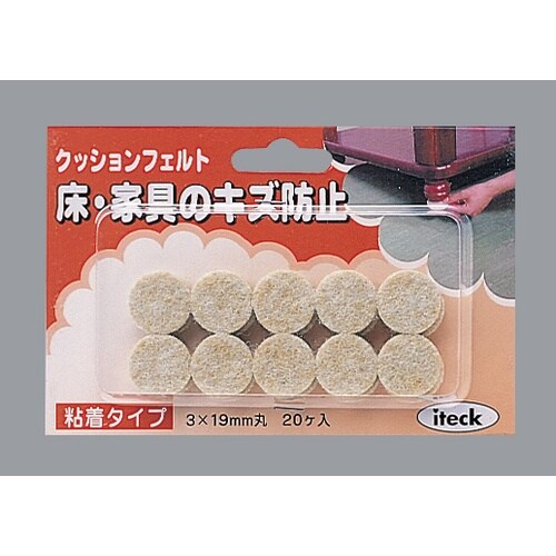 材質:クッションフェルト | その他仕様:粘着テープ付 | その他仕様:ほつれにくく、床を傷つけません。 | サイズ:φ19×3mm | 入数:20枚…