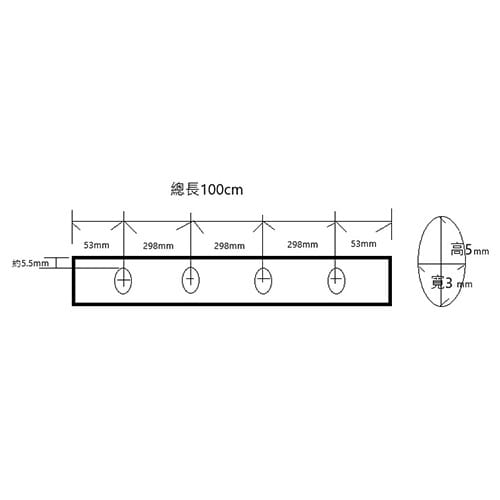 長さ:1000mm | 全高:43mm | 毛丈:18mm | 毛材質:PVC | 取付穴サイズ:3×5mm | 取付穴ピッチ:298mm | 色:黒…