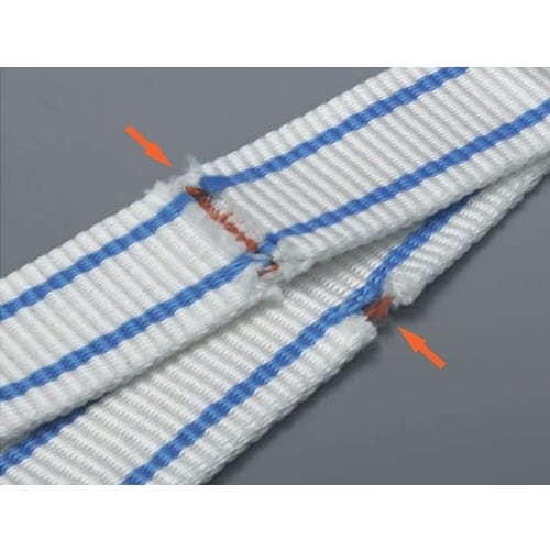三層構造によりベルトに織り込まれたオレンジ色の芯糸が顔を見せたら、危険信号です。ただちに使用を中止してください。