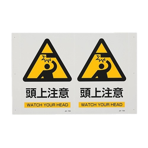 サイズ(mm):300×200×1 | 内容:頭上注意 | 取付穴:φ3mm穴×6ヶ所 | 曲げしろ:30mm | 材質:PET | 用途:当該情報の…
