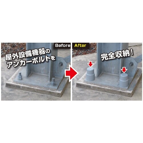 アンカーボルトのサビを防止します。(平座金付ダブルナットを完全収納でき、雨が直接あたりません。)