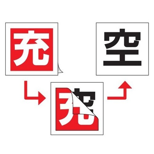 サイズ(mm):50×50 | 材質:PETステッカー | 入数:2枚 | 仕様:粘着 | その他仕様:ボンベが空になったら「充」のシールを剥がしてく…