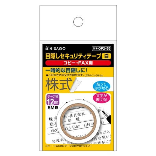 メーカー:ヒサゴ(HISAGO) | 型番:OP2455 | サイズ:12mm×5m | 材質:上質紙 | その他仕様:コピー・FAXの時に隠したい部…