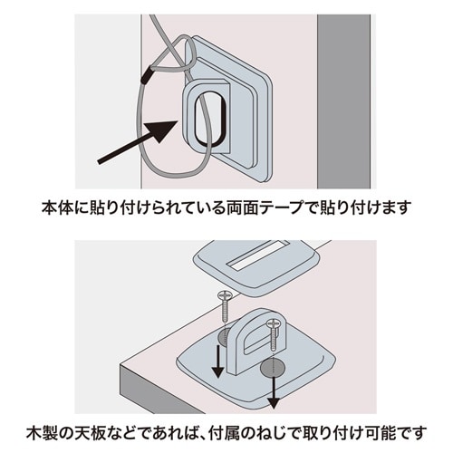 セキュリティスロットのないデスクトップパソコン、ディスプレイ、ラックの木製天板などに取り付ける部品です。
