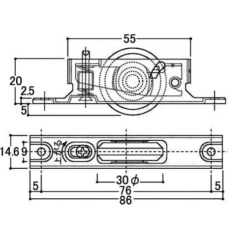 30mm 戸車(平型/ポリアセタール樹脂車/鋼板枠) EA986RH−4 A067-5102