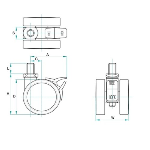 50mm キャスター(ツインホイール/ブレーキ付/U3/8x16山) EA986TG−27 A067-5145