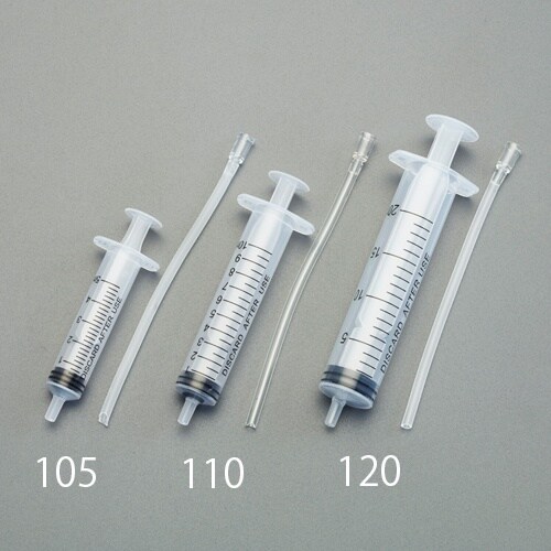 容量:20ml | 全長:122mm | 最小目盛:1ml | サイズ:胴内径:19mm、先端内径(チューブ):3.5mm、先端外径(チューブ):4m…