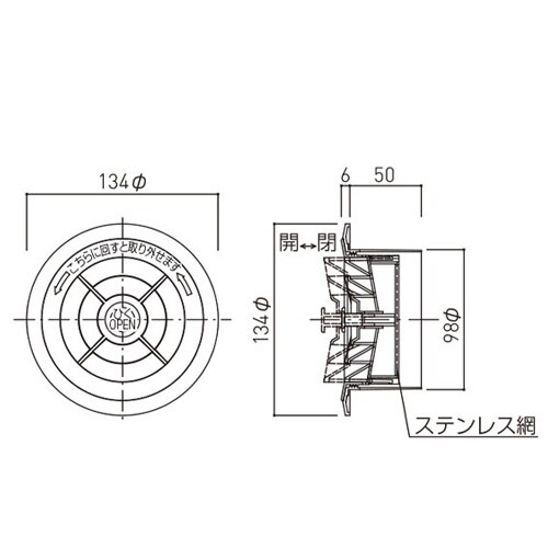 適用パイプ(内径):φ100mm | 材質:ABS樹脂 | 色:シルバーホワイト | 換気有効面積:27c平方メートル | その他仕様:ステンレス網付…