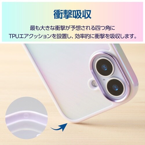 オーロラのような輝きが美しい、ポリカーボネートとTPU(熱可塑性ポリウレタン)の2素材を組み合わせたハイブリッドケースです。