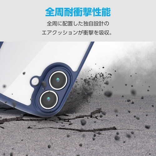 エレコム iPhone 17 ケース ハイブリッド 衝撃吸収 軽量 薄型 極限保護 紺色 A067-6459